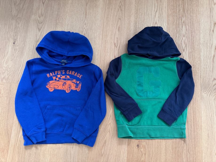 Prodam dva fantovska puloverja s kapuco. Modri je znamke Polo Ralph Lauren v št. 7 oz 128, zeleno modri pa GAP v številki 130. Oba sta ohranjena kot nova, nepoškodovana ali zmuckana. Cena PRL je 25€, cena GAP 15€. Komplet je 35€. Prevzem možen v Ljubljani ali po dogovoru.