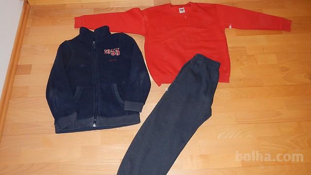 Prodam fantovski rdeč pulover Fruit of the Loom št.128 in jopico št.128. Podarim spodnji del trenerke št.128.