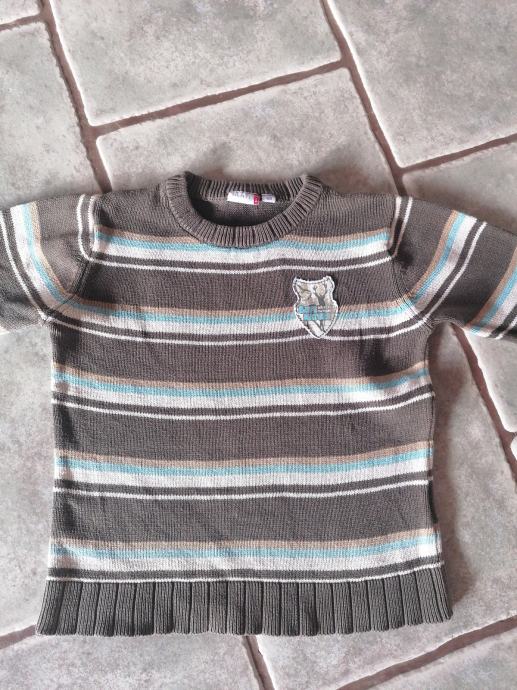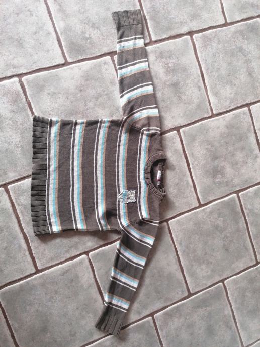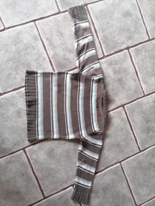 Črtast pulover znamke Berti, št. 128. Dolžina puloverja je 48 cm, od pazduhe do spodnjega roba pa 30 cm. Dolžina rokava od rame do zapestja 43 cm, dolžina rokava od pazduhe do zapestja 35 cm. Iz 100% bombaža. Možna dostava na Izlake ali v Zagorje, lahko pa pošljem tudi po pošti. Oglejte si še ostale moje oglase po ugodni