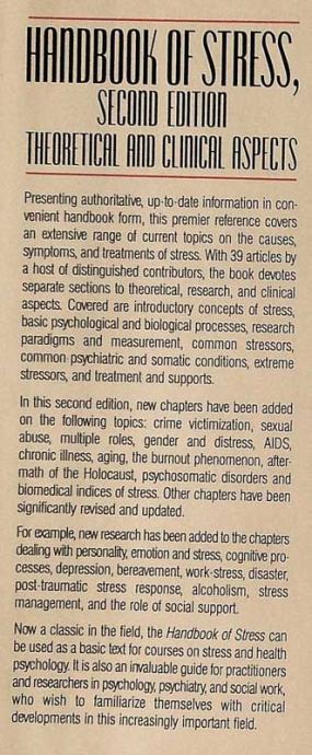 HANDBOOK OF STRESS; THEORETICAL AND CLINICAL ASPECTS
