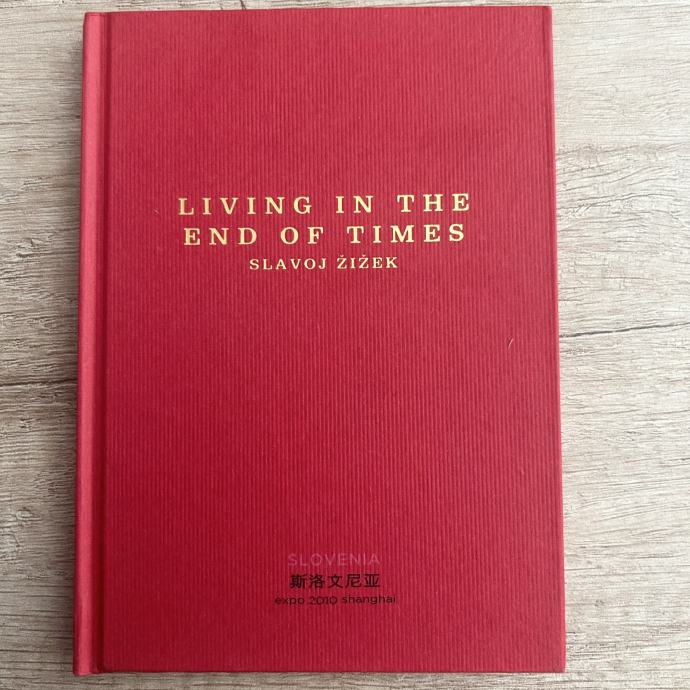 Prodam NOVO knjigo LIVING IN THE END OF TIMES (v angleškem jeziku), našega svetovnega filozofa Slavoja Žižka. Slovenija, EXPO 2010 Shanghai, trde platnice v čudoviti rdeči barvi z vtisom naslova dela in avtorja v zlati barvi na naslovnici.