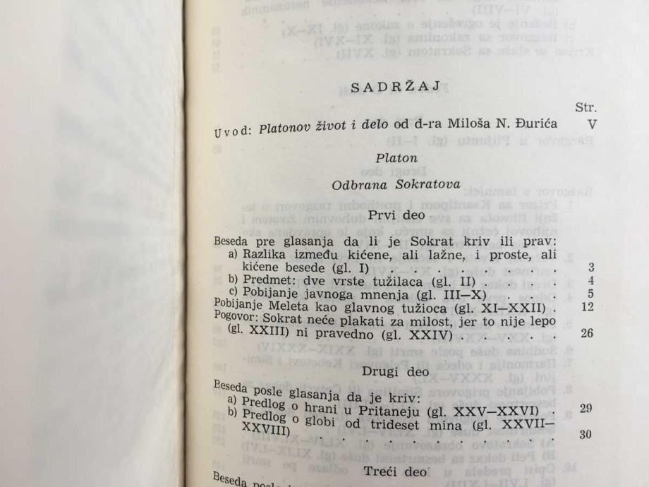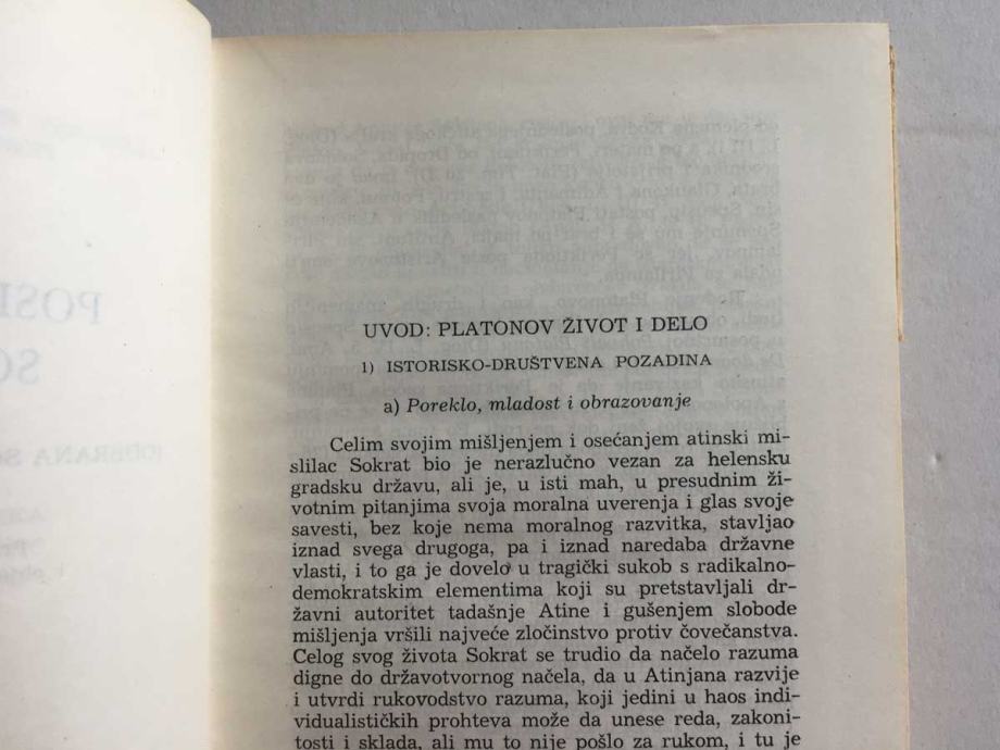 Poslednji dani Sokratovi : (odbrana Sokratova, Kriton, Fedon) / Platon
