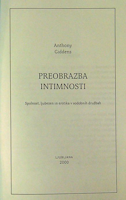 PREOBRAZBA INTIMNOSTI, Anthony Giddens
