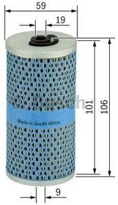 Filter olja BS1457429606 - Mercedes Benz. Lastnosti: premer 59 mm, premer 1: 19 mm, premer 2: 9 mm, višina 106 mm.