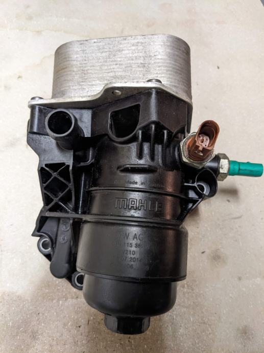 K ohišju spada izmenjevalnik toplote (kovinski element nad filtrom) in oljni filter v kartuši (v notranjosti oljnega filtra).