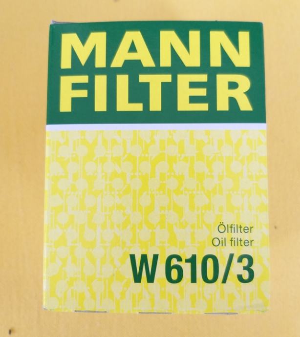 Prodam oljni filter MANN W 610/3 , ki ustreza tudi za motor avta Fiat Grande Punto. Ostali podatki so vidni s fotgrafij.