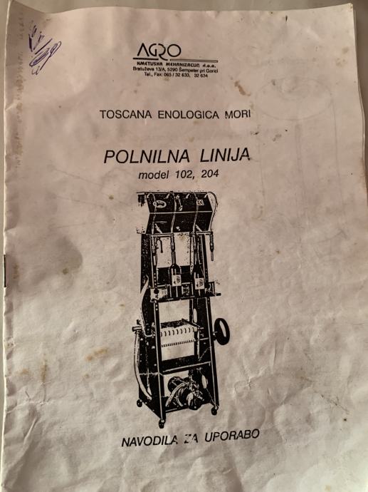Prodaja se malo rabljena polnilna linija z možnostjo filtriranja z filtrirnimi ploščami.