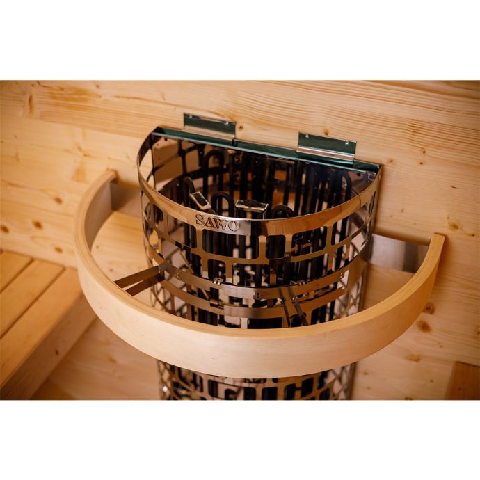 Sod savna 160 ponuja optimalen pogled na pokrajino skozi njena steklena vrata. Ta savna je enostavna za namestitev in ima skupno dolžino 210 cm. Za ogrevanje se uporablja električni grelnik savne.