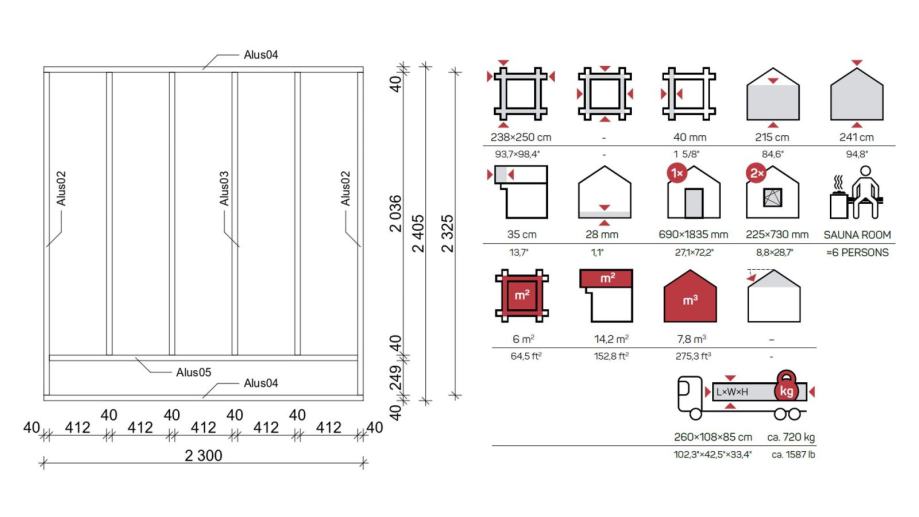 Vse lesene savne debeline 40 mm vsebujejo standardni komplet: vrata, okna in pritrdilno opremo, ki omogoča enostavno in hitro montažo.