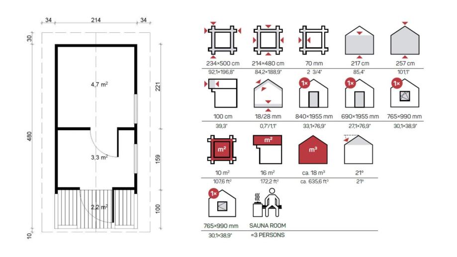 Komplet lesenih savn debeline 70 mm vključuje naslednje: