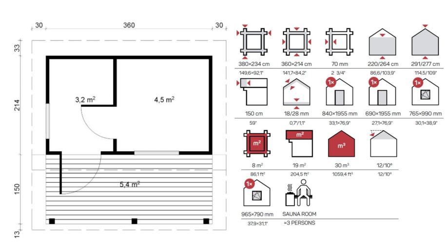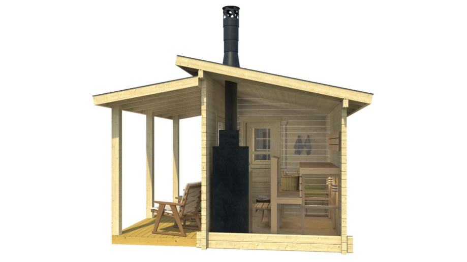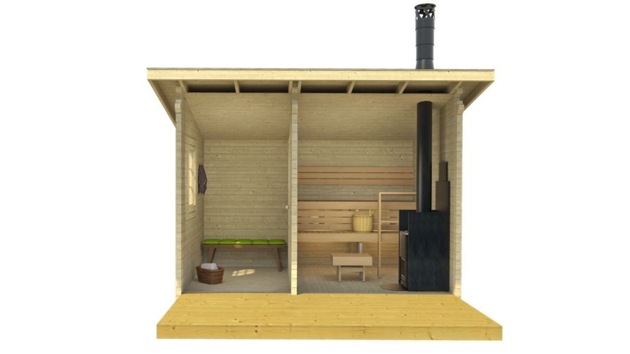 Komplet Maridinih lesenih savn debeline 70 mm vključuje: