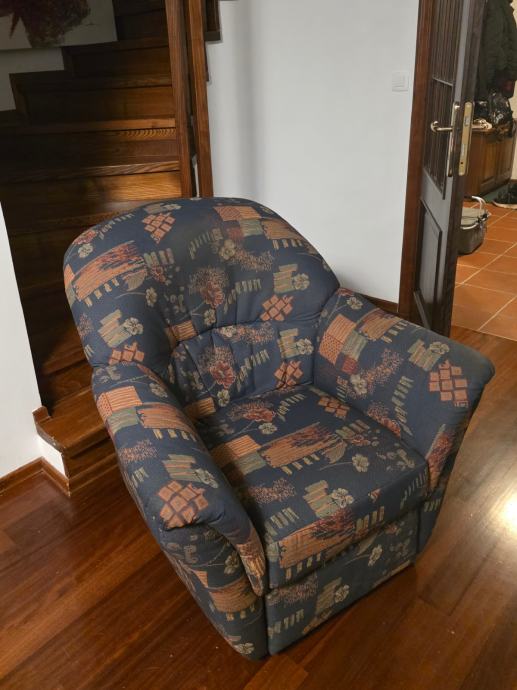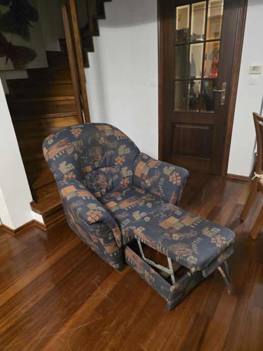 Prodamo rabljen fotelj, ki je dobro ohranjen. Ima možnost raztegljivega / zložljivega dela - počivalnika za noge.