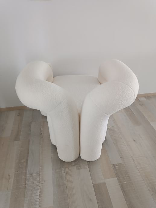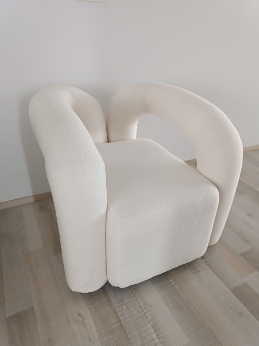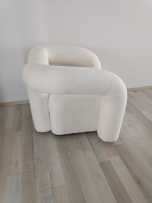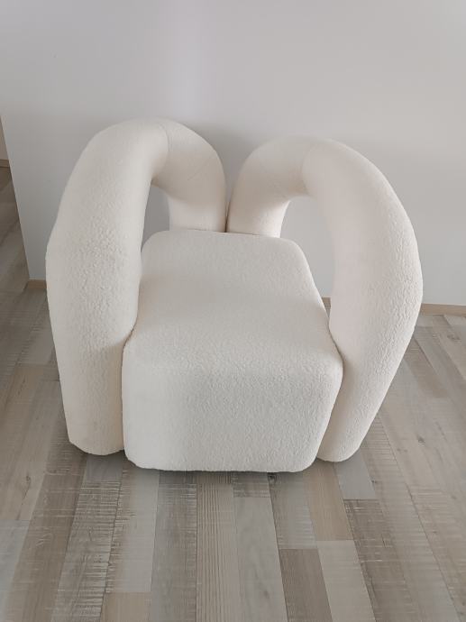 Prodam moderen in zelo udoben dizajnerski fotelj v elegantni beli/krem barvi. Fotelj ima poseben, zaobljen dizajn, ki lepo dopolni sodobne in minimalistične interierje.