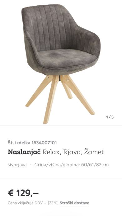 60 x 61 x 82 cm (Š x V x G) velik stol z vrtljivim sedežem.