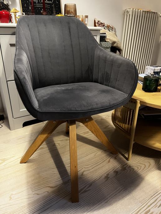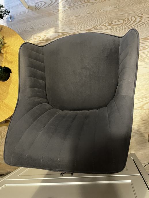 Fotelj je opremljen z žametno prevleko sive barve iz 100% poliestra. V notranjosti mehka penasta podloga zagotavlja optimalno udobje sedenja. Trdne noge iz masivne bukve. Fotelj je lahko obremenjen do največ 140 kg.