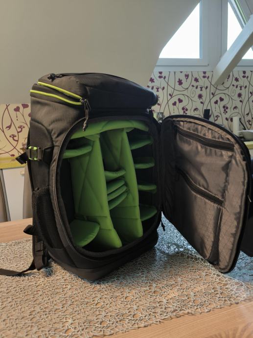 Sprejme velik DSLR z objektivi in še mnogo druge opreme.