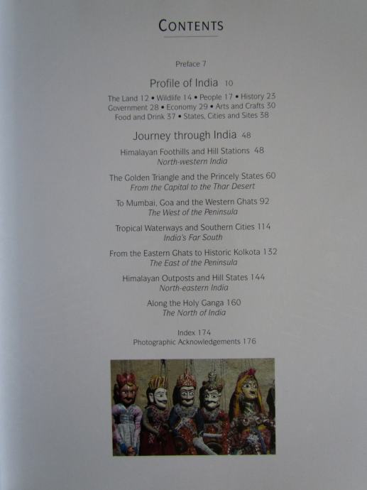 Prodam knjigo o Indiji v angleščini, avtorica besedila Shobita Punja in avtor fotografij Gerald Cubitt. Knjiga poleg številnih fotografij vsebuje tudi besedilo o kulturno zgodovinskih in ostalih značilnostih te države. Nekaj podatkov o knjigi: založnik New Holland Publishers, leto izdaje 2004, mehka vezava, št. strani 176.