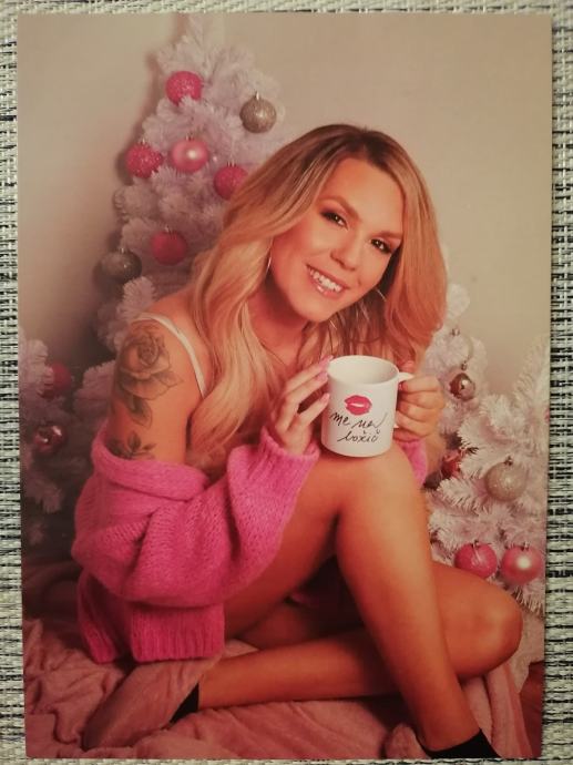 Prodam fotografijo priljubljene pevke Nike Zorjan, ki jo je Nika osebno podpisala na hrbtni strani! Fotografija je profi izdelave, dimenzij 21cm x 14,5cm, z božičnim motivom.