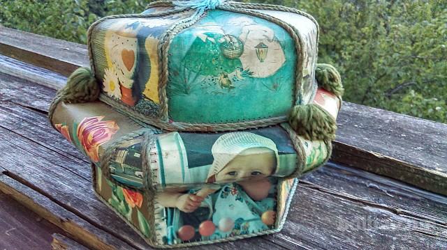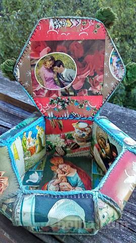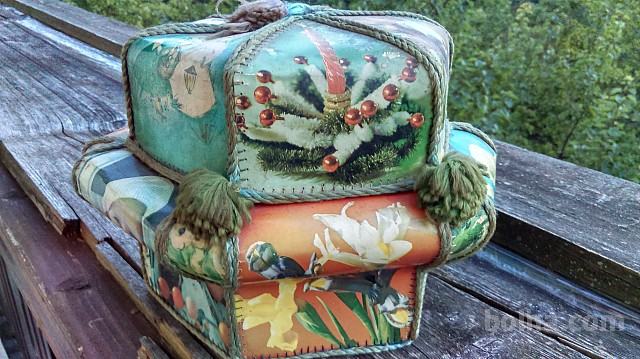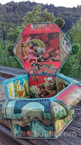 retro škatla za nakit narejena iz razglednic. inf 041 886 241
