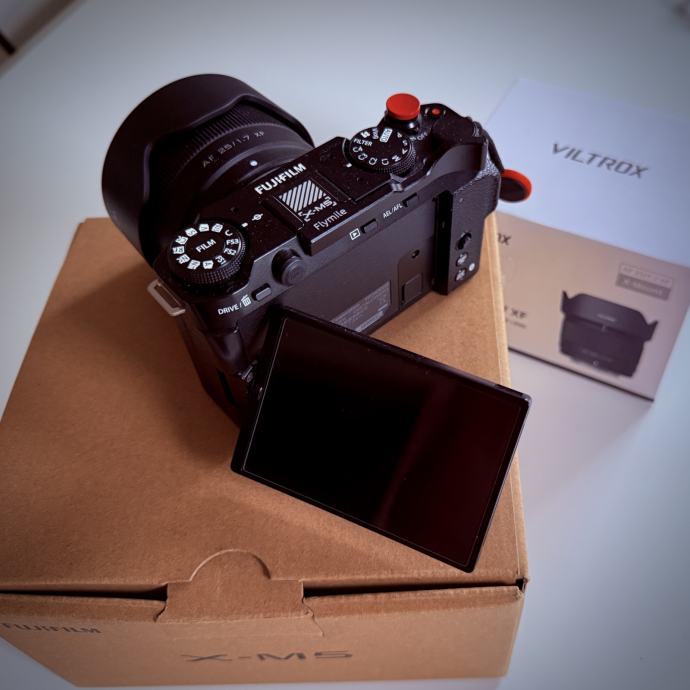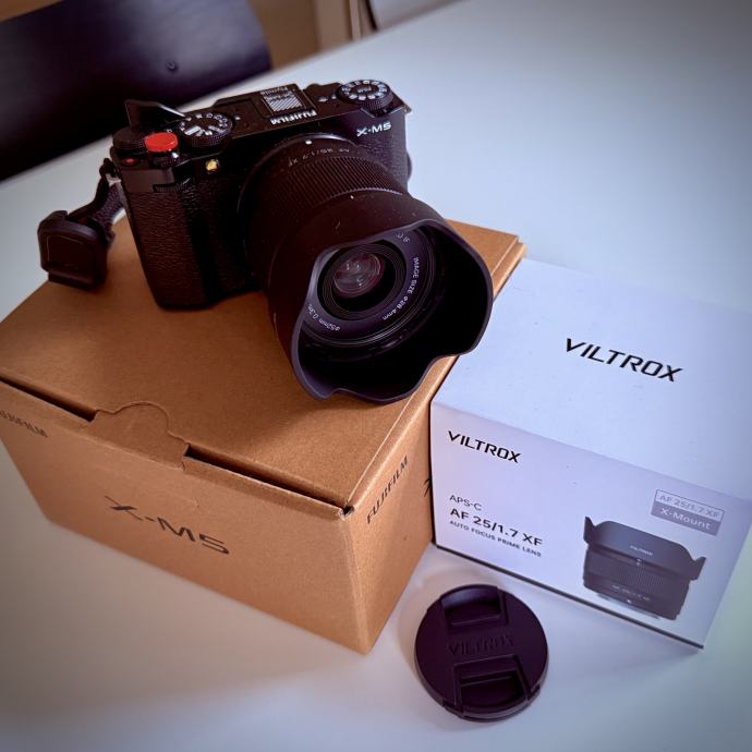 Prodajam praktično nerabljen Fujifilm X-M5 fotoaparat (kupljen letos, še v garanciji) skupaj z odličnim objektivom Viltrox AF 25mm f/1.7 Air (star dober mesec, prav tako praktično nerabljen). Stanje obeh je odlično, brez znakov uporabe.