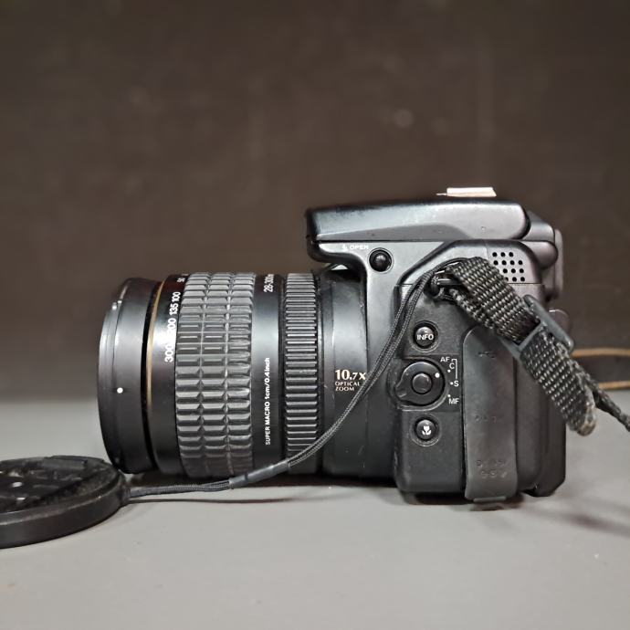 Vključuje nagibni 2-palčni LCD-zaslon in 0,44-palčno elektronsko iskalo, kar omogoča enostavno komuniciranje s fotografijo. Dvojna reža za shranjevanje podpira kartice xD-Picture in CompactFlash, kar zagotavlja veliko prostora za vaše najljubše fotografije. Priložena sta spominska kartica in priročna torbica. Z nakupom pridobite tudi 1-mesečno garancijo. Ne zamudite priložnosti, da postanete lastnik tega zmogljivega fotoaparata!