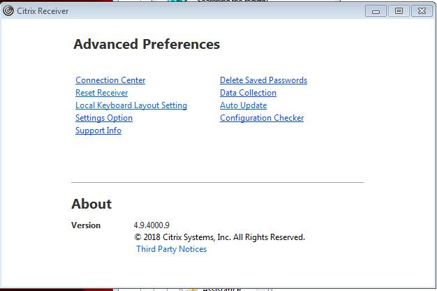 Nameščen je Citrix Receiver 4.9 za dostop do oddaljenega namizja.