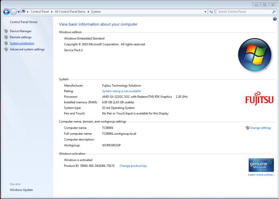 Na ThinClientu so naloženi licenčni Windowsi 7 Embedded, v angleškem jeziku.