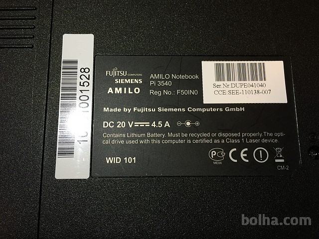 Prodam odlično ohranjen prenosni računalnik Fujitsu Siemens Amilo Pi 3540.