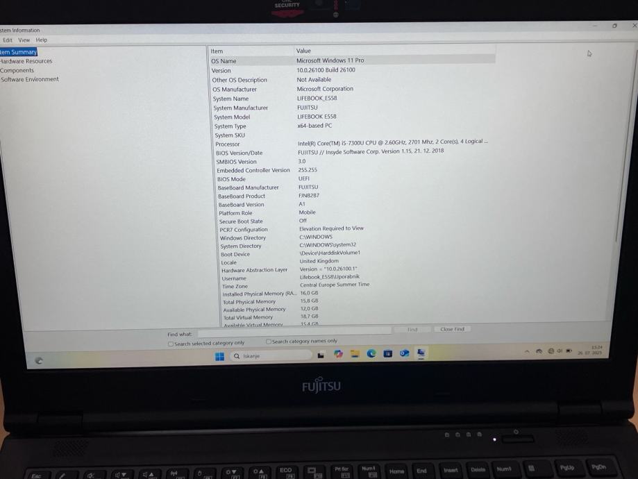 Prenosnik Fujitsu Lifebook E558 Core i5 2.6GHz, 16GB DDR, 512GB M2 SSD