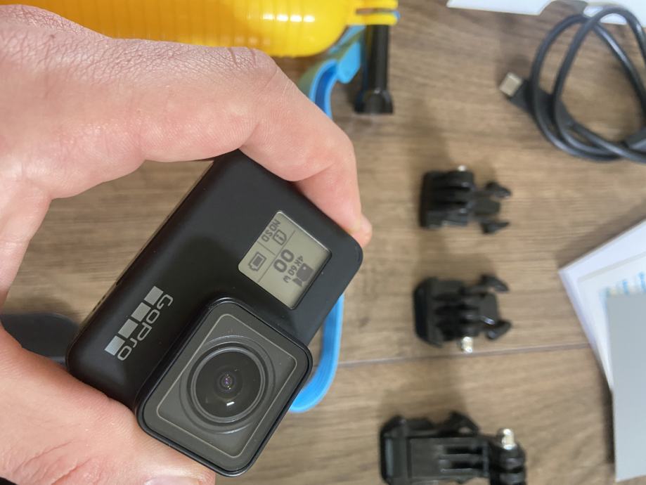 prodam gopro hero 7 black 2x kupljeno novo dodam racun lepo ohranjeno malo rabljeno vse skupaj mogoce 10x se vidi iz slik da je kamera kot nova, v kompletu je kamera polnilec racun in se nekaj setov na namestitev kamere in baterija dodam se tudi nekaj nastavkov in nalepk