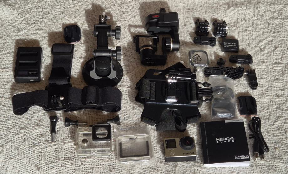 Prodam akcijsko kamero GoPro Hero4 Black in gimbal (optični stabilizator) Feiyu WG2. Zraven je še precej dodatne opreme. Kamera in gimbal delujeta brezhibno. Možna prodaja tudi ločeno. GoPro = 100 €, Feiyu WG2 = 100 €.