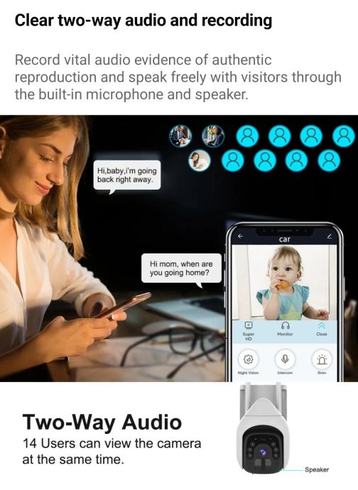• Dvosmerni AVDIO zvok (preko kamere slišite dogajanje, lahko pa tudi govorite)