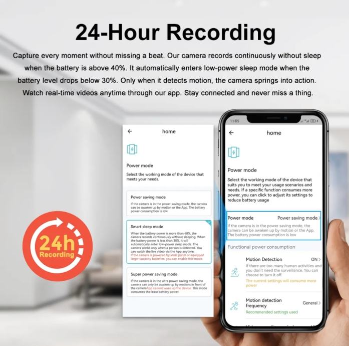 • SLEEP MODE (v kolikor kamera ne bo zaznala nobenega gibanje ljudi ali živali, se bo samodejno preklopila v način "spanja" s čimer bo še dodatno varčevala z električno energijo)