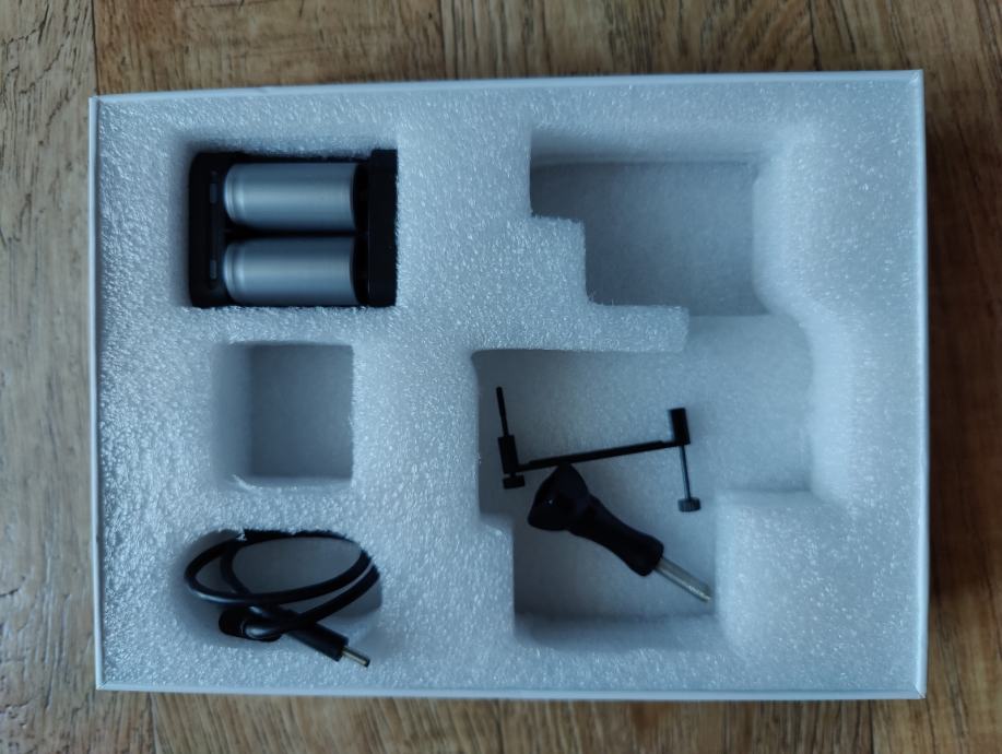 Vse kar manjka in bi bilo potrebno kupit je baterija. Stara se mi je napihnila. Ne uporabljam in mi samo stoji. Zraven priložim še gimbal (stabilizator) in selfie stick s kontrolerjem.