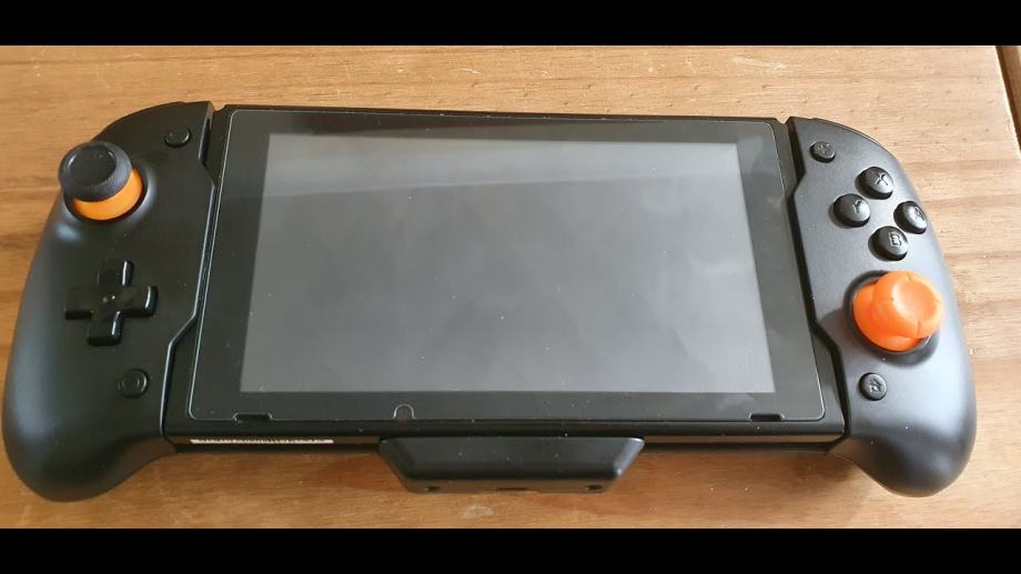 Nov nerabljen gamepad controller Zacro za Nintendo Switch. Vrhunski controler, ki deluje na switch konzoli v handheld mode (ročno igranje) tako da konzolo vstavite v controller. Omogoča precej bolj udobno igranje kot joyconi priloženi konzoli. Žal brez embalaže.