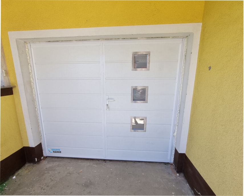 Iz zaloge se prodajajo ALU dvokrilna garažna vrata HANUS z vso opremo. V ceno je vključena tudi kljuka, varnostni cilinder z varnostnimi 3 ključi ter ključavnica. Vrata so nova brez poškodb. Prodajajo se zaradi napačno izmerjenih dimenzij.