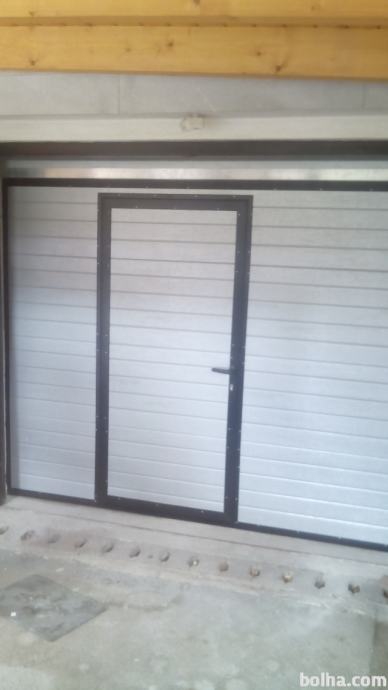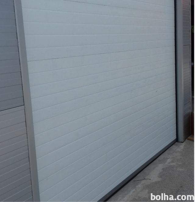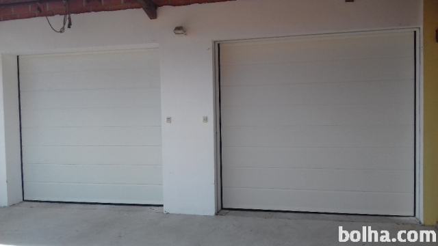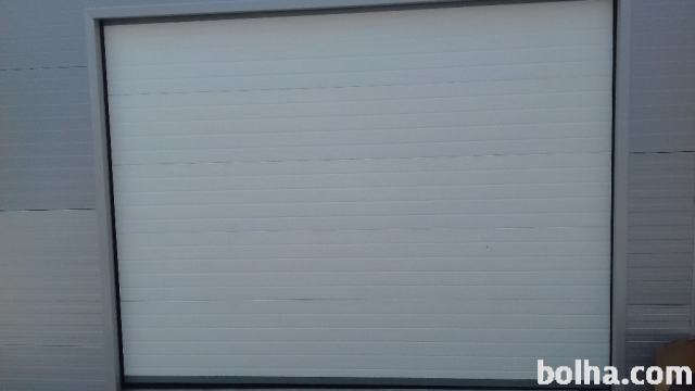 Vrata v beli barvi vključeno z motorjem in 2 daljinca z ročnim odpiranjem v sili.
