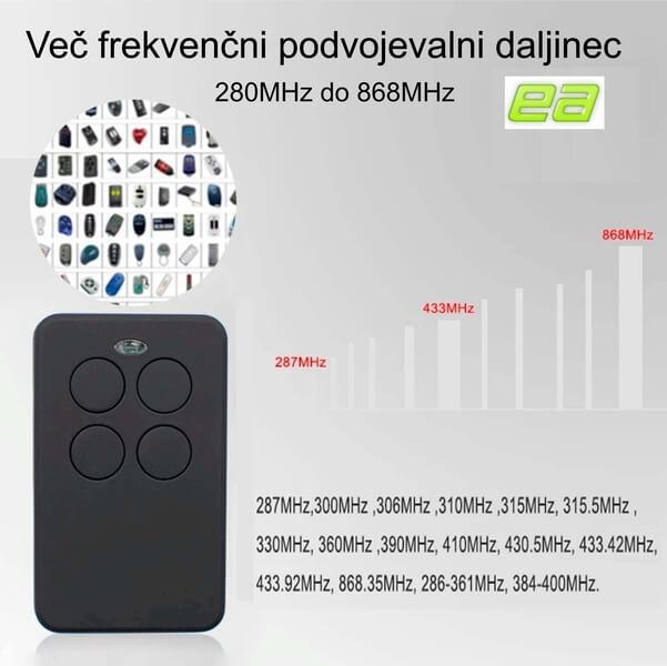 • **Samodejno skeniranje** frekvence in kode iz obstoječega daljinca