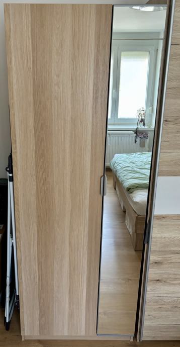 Dve leti stara in odlično ohranjena garderobna omara serije PAX (IKEA). Na eni polovici vrat je ogledalo po celotni višini. Ima 5 polic.