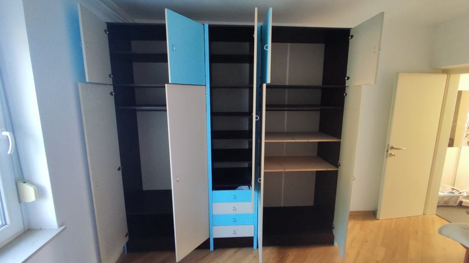 • Bela, svetlo modra in rjava barva, srebrni ročaji.