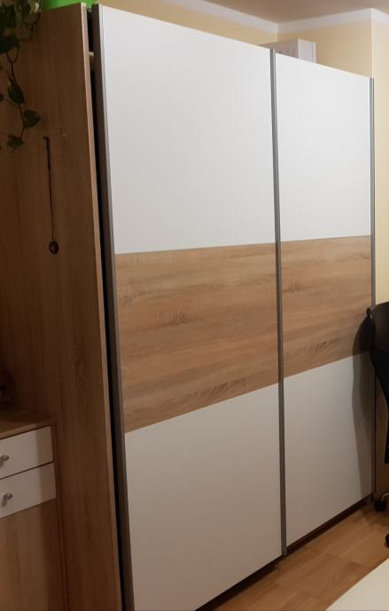 Rabljena. Lepo ohranjena. Kupljena v Harvey Normanu. Na levi in desni strani za obešalnike. Omara ima na vsaki strani dve polici (eno zgoraj in eno spodaj).