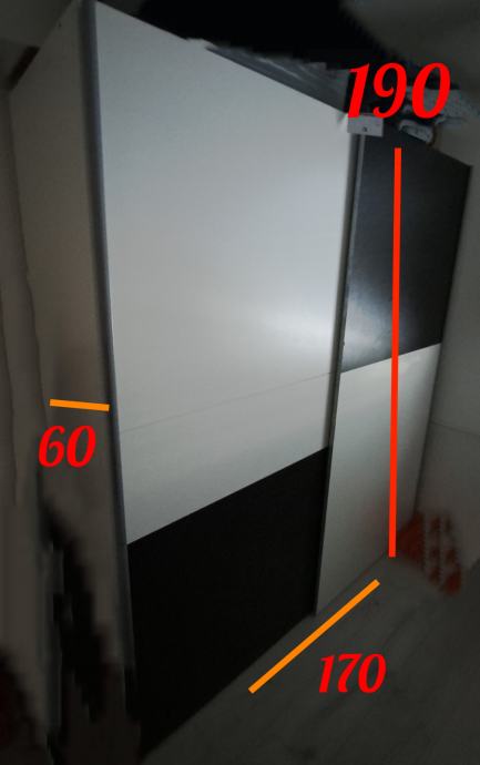 Prodam lepo ohranjeno omaro (razstavljena) z drsnimi vrati. 2x polica in 2x drog za obešanje.
