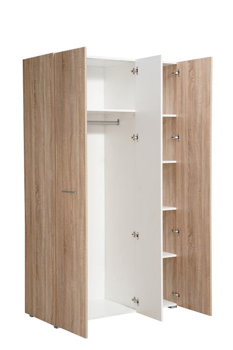 Omara vključuje 5, po višini pa 3 poljubno nastavljive police, 1 obešalno palico. Nosilnost polic je max. 15 kg.