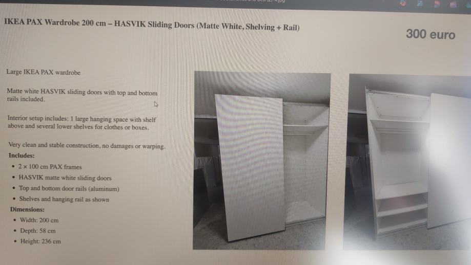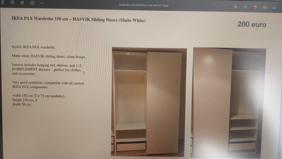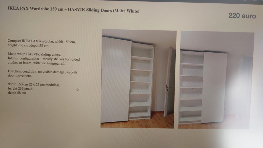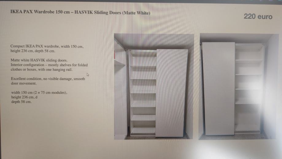 Prodamo več kosov garderobnih omar IKEA. Opisi, dimenzije in cene so vidni na posamični slikah.