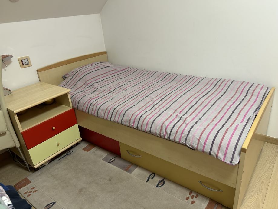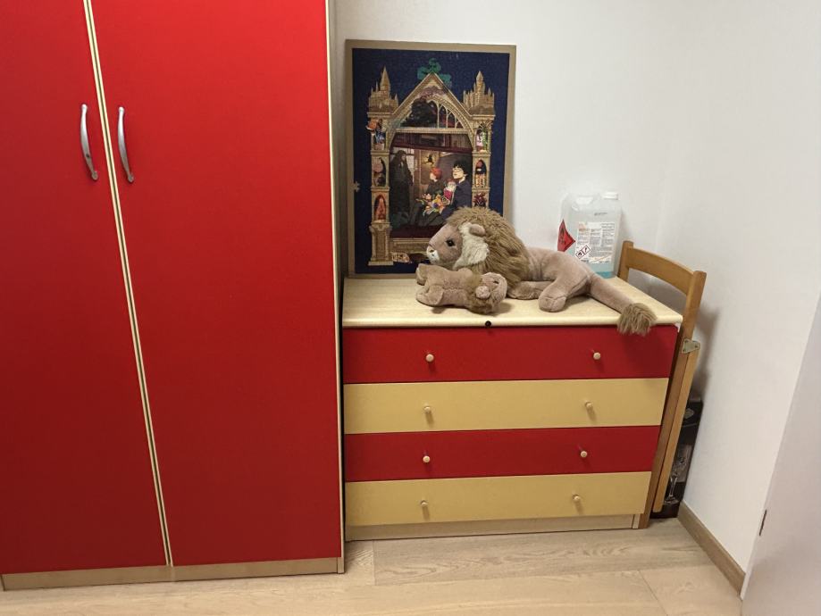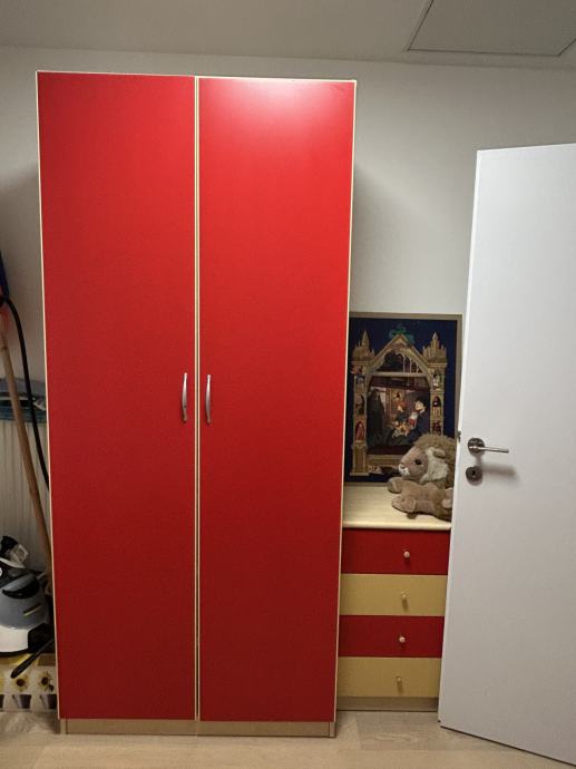 Lepo ohranjeno pohištvo- komplet otroške sobe. Vključuje veliko garderobno omaro, manjšo garderobno omaro, posteljo, predalnik in nočno omarico.