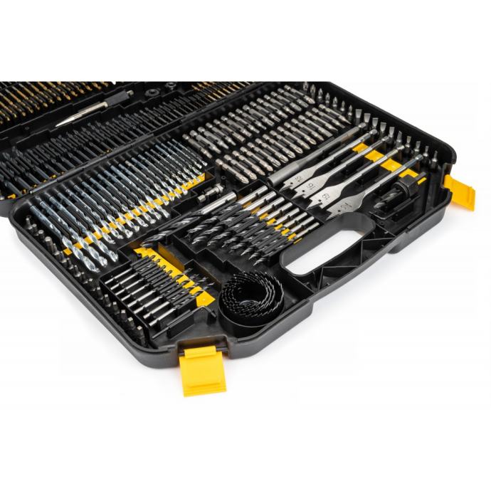 Komplet dodatkov Powermat, ki ga sestavlja vseh 246 priročnih elementov, vam bo omogočil opravljanje različnih nalog. Komplet vsebuje svedre za les, svedre za kovino, svedre za beton, nastavke, svedre, vrtalne žage, nastavke, šestrobe nastavke, grezilo, imbus ključ, adapterje. Vse je postavljeno v trdno ohišje, zaradi česar shranjevanje in transport tako velikega kompleta ne bo povzročalo težav.