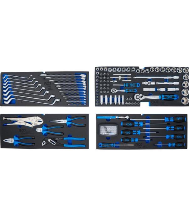 • Pladnji za orodje s peno (dimenzije: 500 x 195 x 30 mm) in en vložek za pločevino (dimenzije: 515 x 215 x 30 mm)