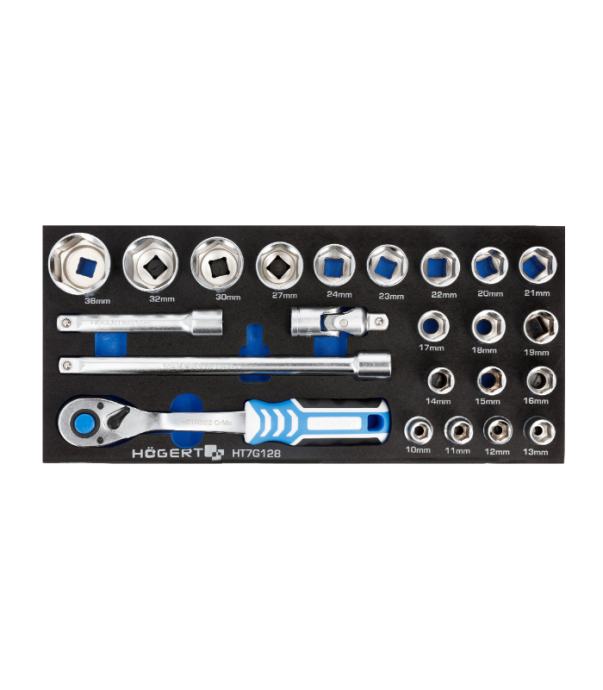HOEGERT SET VIJAČNIH NASTAVKOV Z RAGLJO, 1/2", 23-DELNI, organizator E