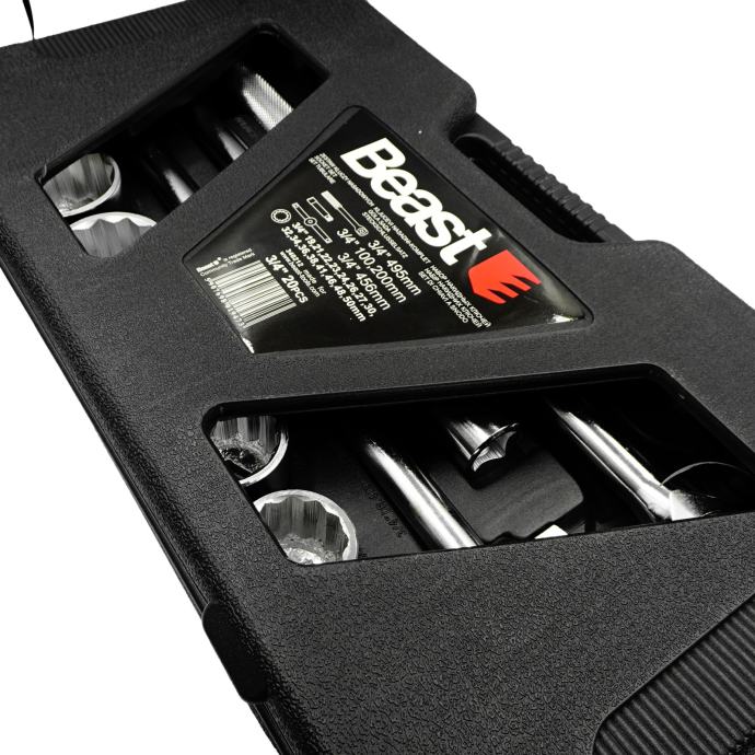 3/4″ dvanajst kotne vtičnice. Komplet v praktičnem plastičnem ohišju.