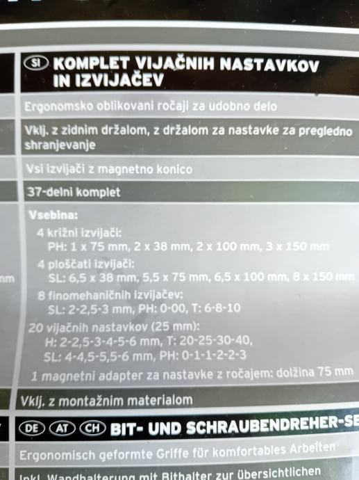 Prodam 37-delni komplet vijačnih nastavkov in izvijačev. Telefon 064 255 340.
